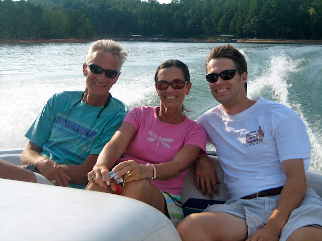 This weekend my parents met us at the lake and we enjoyed getting to spend lots of time on the water with them. They've only been to our lake house one other time, so we enjoyed showing them all of our favorite spots and letting them enjoy what we do most summer weekends. Trey also joined us for the day on Saturday (Stefanie was working and we missed her). Handley and Harper had been talking about seeing Mimi and Dadaw for a few days and were SO excited to see them. Harper took a little bit to warm up to them, but then didn't want them out of her sight. When I put her to bed the first night all I heard was her calling out their names like she wasn't done playing. :-)